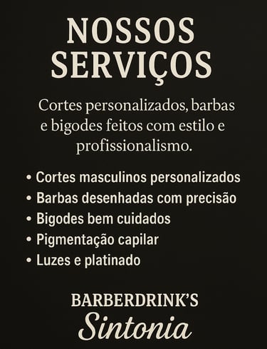Oferecemos cortes de cabelo, barba, bigode e sobrancelhas masculinas.